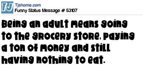 X Being an adult means going to the grocery store, paying a ton of money and still having nothing to eat.