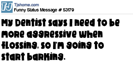 - # 153123 The dentist told me I need to be more aggressive when I floss so I've decided to start growling.