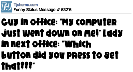 X says Guy in office: "My computer just went down on me!" Lady in next office: "Which button did you press to get that???"