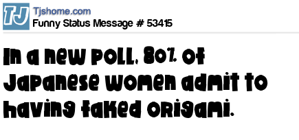 X In a new poll, 80% of Japanese women admit to having faked origami.