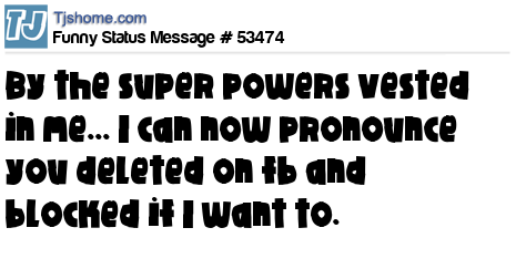 X is By the super powers vested in me... I can now pronounce you deleted on fb and blocked if I want to.