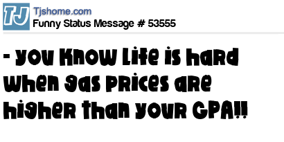 X says - you know life is hard when gas prices are higher than your GPA!!