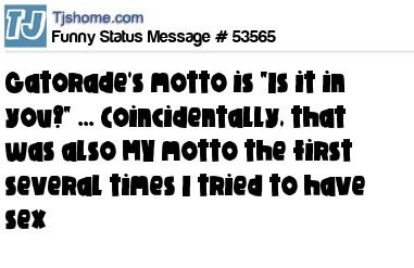 X Gatorade's motto is "Is it in you?" ... Coincidentally, that was also MY motto the first several times I tried to have sex