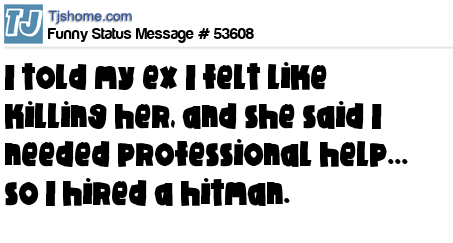 - # 32332 I told my ex I felt like killing her, and she said I needed professional help. .... So I hired a hitman