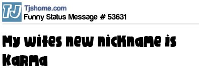 - # 134335 After spending the night with a stripper named KARMA last night, the phrase "Karma is coming for you" took on a whole new meaning!