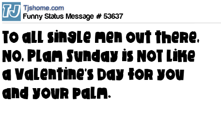 - # 90581 To everybody that is single don't worry you will have your day............ Palm Sunday is just around the corner