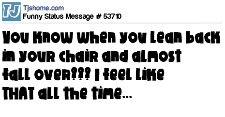 X says you know when you lean back in your chair and almost fall over??? I feel like THAT all the time...