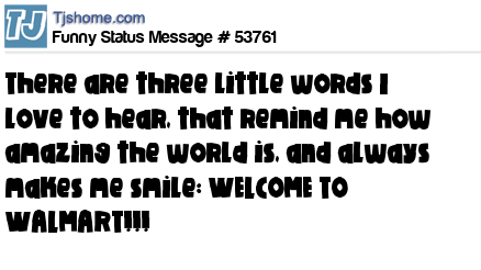 X says there are three little words I love to hear, that remind me how amazing the world is, and always makes me smile: WELCOME TO WALMART!!!