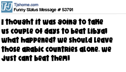 X is i thought it was going to take us couple of days to beat libya! what happened? we should leave those arabic countries alone. we just cant beat them!