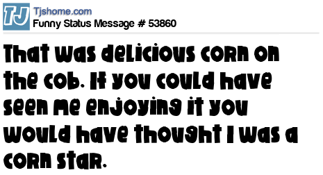 X is That was delicious corn on the cob. If you could have seen me enjoying it you would have thought I was a corn star.
