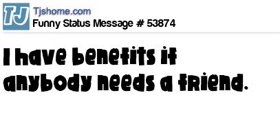 X I have benefits if anybody needs a friend.