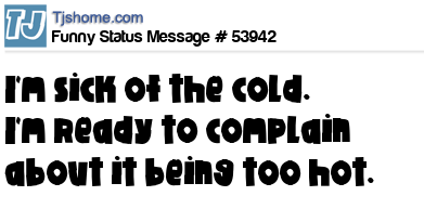 X says I'm sick of the cold. I'm ready to complain about it being too hot.