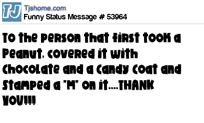 X is To the person that first took a Peanut, covered it with Chocolate and a Candy Coat and Stamped a "M" on it....THANK YOU!!!