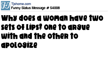 - # 29596 why does a woman have two sets of lips? One to argue with the other to apologize.