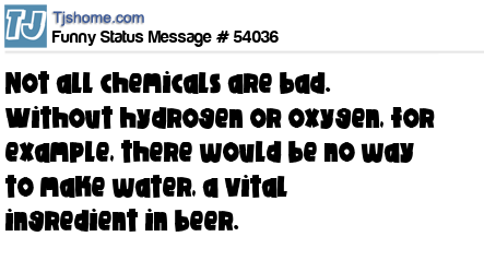 X Not all chemicals are bad. Without hydrogen or oxygen, for example, there would be no way to make water, a vital ingredient in beer.