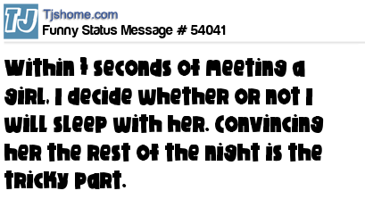 X Within 7 seconds of meeting a girl, I decide whether or not I will sleep with her. Convincing her the rest of the night is the tricky part.