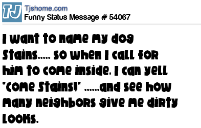 - # 27807 adopted a white dog the other day and named him Stains. Now I can yell "Come Stains, Come Stains" out my front door!