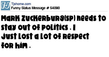 X is Mark Zuckerburg(sp) needs to stay out of politics . I just lost a lot of respect for him .