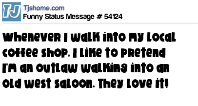 X Whenever I walk into my local coffee shop, I like to pretend I'm an outlaw walking into an old west saloon. They love it!