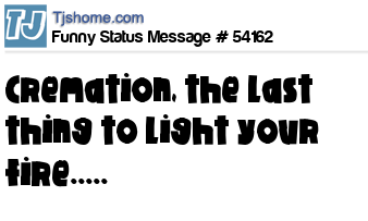 - # 24134 got a call today from a burial place, wanted to sell me on cremation. They told me I could pay for all services in advance. I asked, “What if I am in a horrible car fire, does my family get a refund? Or, do you burn me up again like refried–John