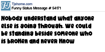 X Nobody understand what anyone else is going through. We could be standing beside someone who is broken and never know