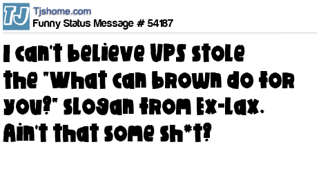 X I can't believe UPS stole the "What can brown do for you?" slogan from Ex-Lax. Ain't that some sh*t?