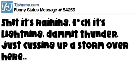 X Sh!t it's raining, f*ck it's lightning, dammit thunder, just cussing up a storm over here..