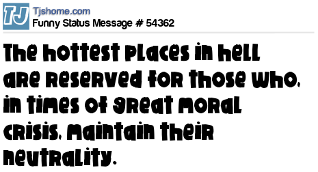 X is The hottest places in hell are reserved for those who, in times of great moral crisis, maintain their neutrality.