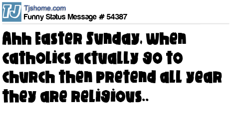 - # 18485 Happy Easter!!! Remember that laying on your back screeming OH GOD is not a substitue for going to church Sunday