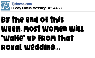 X by the end of this week, most women will "wake" up from that royal wedding...