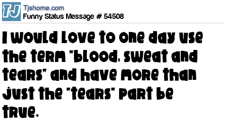 X I would love to one day use the term "blood, sweat and tears" and have more than just the "tears" part be true.