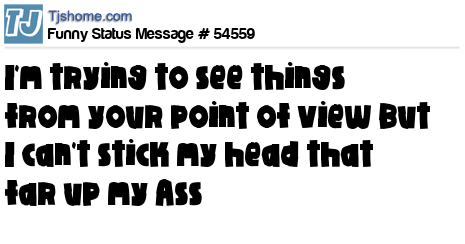 - # 53023 I'm trying to see things from your point of view, but I can't stick my head that far up my ass