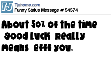 - # 101864 Try saying "good luck" without sounding sarcastic..... Good luck.