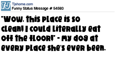 X is "Wow, this place is so clean! I could literally eat off the floor!" - my dog at every place she's ever been.