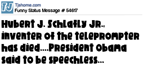 X is Hubert J. Schlafly Jr., inventer of the teleprompter has died....President Obama said to be speechless...