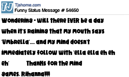 X is Wondering - will there EVER be a day when it's raining that my mouth says 'Umbrella'.... and my mind doesn't immediately follow with 'ella ella eh eh eh' ☂ ☂ ☂ ☂ Thanks for the mind games, Rihanna!!!