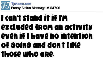 X I can't stand it if I'm excluded from an activity even if I have no intention of going and don't like those who are.