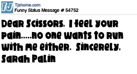 - # 39018 Dear Scissors, I feel your pain... No one wants to run with me either. Sincerely, Sarah Palin.