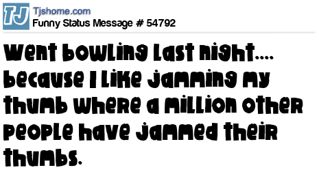 X Went bowling last night.... because I like jamming my thumb where a million other people have jammed their thumbs.