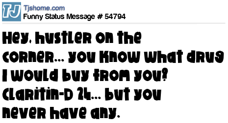 X Hey, hustler on the corner... you know what drug I would buy from you? Claritin-D 24... but you never have any.