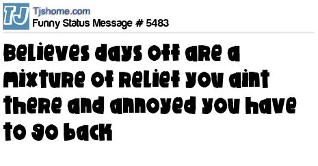 X believes days off are a mixture of relief you aint there and annoyed you have to go back