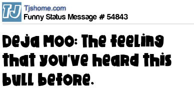 - # 67905 Deja moo: the feeling you've heard this bull$hit before.