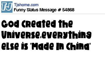 - # 98838 When god created china he knew he would never have to make anything else again.....