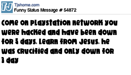 X says come on playstation network you were hacked and have been down for 5 days, learn from Jesus, he was crucified and only down for 3 day