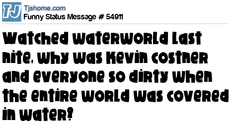 X is watched waterworld last nite, why was kevin costner and everyone so dirty when the entire world was covered in water?