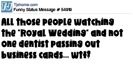 X is all those people watching the "Royal Wedding" and not one dentist passing out business cards... wtf?