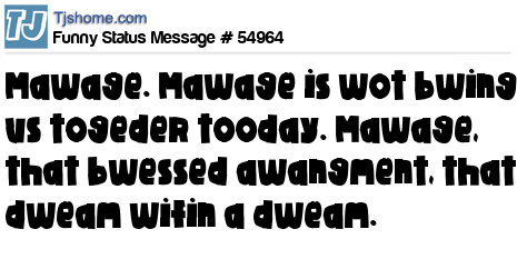 X Mawage. Mawage is wot bwings us togeder tooday. Mawage, that bwessed awangment, that dweam wifin a dweam.