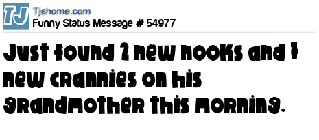 X has just found 2 new nooks and 7 new crannies on his grandmother this morning.