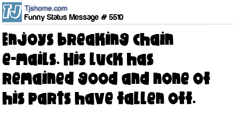 X enjoys breaking chain e-mails. His luck has remained good and none of his parts have fallen off.