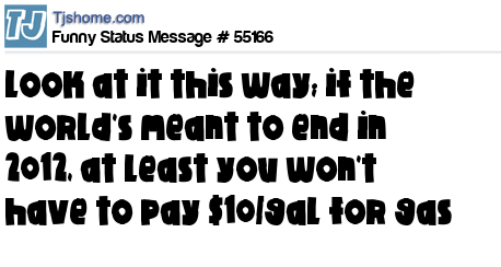 X Look at it this way; if the world's meant to end in 2012, at least you won't have to pay $10/gal for gas